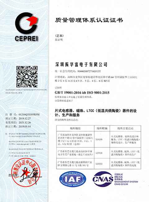 2018年建立IATF16949汽车电子质量管理体系并得证书。
